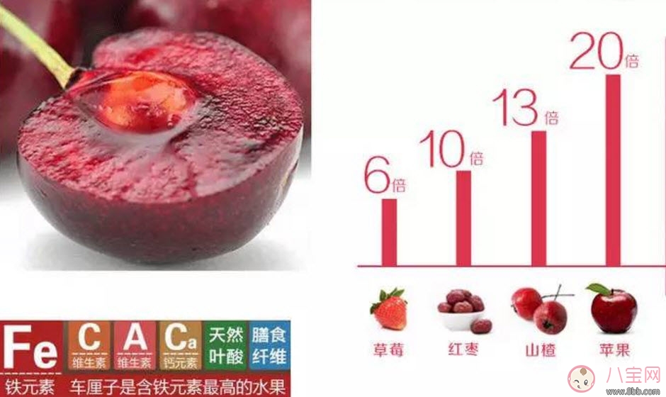 車?yán)遄雍F量高,每百克車?yán)遄又泻F量多達(dá) 5.9 毫克,位于各種水果之首。常食車?yán)遄涌裳a(bǔ)充體內(nèi)對鐵元素量的需求,促進(jìn)血紅蛋白再生,對孕婦自身和胎兒都有防治缺鐵性貧血,增強(qiáng)體質(zhì),健腦益智的作用。