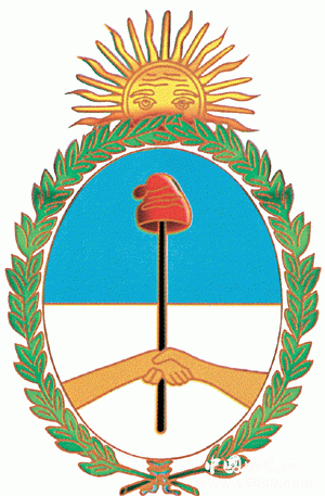 為豎橢圓形,上半部為天藍(lán)色,代表正義;下半部為白色,代表純潔和信念。國(guó)徽底部?jī)芍挥沂志o握,象征著拉普拉塔聯(lián)合省人民的團(tuán)結(jié)。圖案中央,兩手緊握的一支短矛挑起一頂象征自由的紅色弗里吉亞帽,意味著為自由而戰(zhàn)。圖案頂部噴薄欲出的太陽(yáng)向世人宣告,一個(gè)新的民族國(guó)家伴隨著真理、尊嚴(yán)和繁榮誕生了。國(guó)徽四周有綠色桂樹葉環(huán)繞,象征光榮和勝利。天藍(lán)色與銀白色彩帶結(jié)象征著阿根廷民族。由于各地使用國(guó)徽?qǐng)D案不統(tǒng)一,甚至做出任意改動(dòng),1944年政府頒布10.302號(hào)法令,確定國(guó)徽的正式圖案。