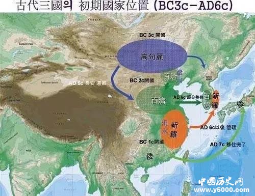公元前3世紀-公元6世紀,進入百濟、新羅、高句麗三國爭霸時代,漢朝領土被擠到西域