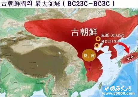 在公元前23世紀-公元3世紀,古朝鮮帝國已成為當時世界上疆域最大的國家,夏、商和當時的日本只是其小小的屬國