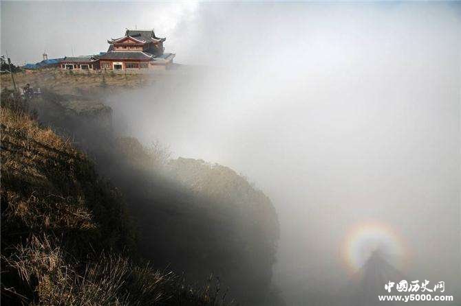 峨眉山的金頂海拔3077米,與千佛頂、萬佛頂三峰并峙,猶如筆架一般。三峰東臨懸崖,峭壁高達(dá)二千多米,這種獨(dú)特的地勢形成了峨眉山特有的“海底云”。在峨眉山的“海底云”當(dāng)中,空氣中的濕度非常大,這就為太陽光線提供了充裕的“游戲場所”。
