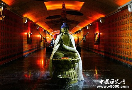 1987年4月3日,考古人員在清理古塔拆除后的塔基時(shí),終于使得一個(gè)埋藏了1000多年的絕世秘密重見天日:塔下果真埋葬著珍貴的“佛指舍利”。原來,考古人員無意中在塔基處浮土下發(fā)現(xiàn)了一塊白玉石板,除去浮土,一尊雄獅浮雕漸漸顯露出來。推開白玉石板,一個(gè)神秘的洞口赫然出現(xiàn)。這就是法門寺地宮的入口??脊湃藛T沿著地宮的幽暗隧道前進(jìn),發(fā)現(xiàn)墻壁為黑色大理石拼貼。石壁因年代久遠(yuǎn)呈現(xiàn)出一種特有的斑駁,東側(cè)上刻有白色的文字。