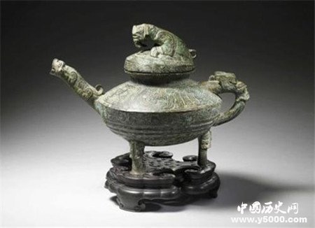 “虎鎣”到底是什么?有說法稱,“虎鎣”是一種盛水的器物,且器型比較特別,三個(gè)腿柱一般為圓錐體,而這件為圓柱體腿柱。它一般是與“盤”類青銅器形成“組合套裝”。但也有說法認(rèn)為,“鎣”實(shí)際上是備火長頸瓶,可能是一種油壺。因此,“鎣”的本來面目還有待研究。