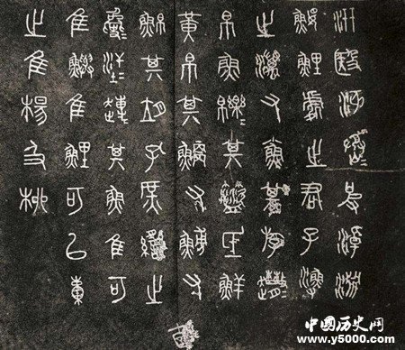 唐代在天興縣(今陜西鳳翔)出土十塊鼓形石,每塊石上均刻有四言詩一首,由于詩歌內(nèi)容多記錄和歌頌漁獵之事,又由于石形如柱礎,故又稱“獵碣”。石鼓文在文學、歷史學、書法諸方面,均有很高的價值,唐代詩人韓愈、韋應物等,曾先后作《石鼓歌》稱頌。