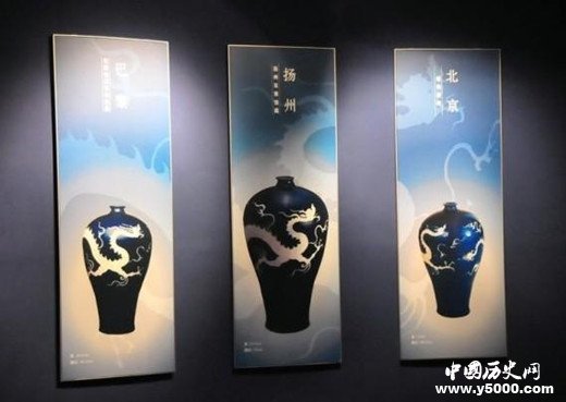 除了藝術(shù)高超,這類瓶子也非常稀少。元代的霽藍釉瓷器,目前全世界只存有12件,這12件里面,白龍紋飾的梅瓶只有3件。除了揚州博物館的這一件,還有一個在巴黎的集美博物館,另一個在北京頤和園。但另外兩件都有明顯的瑕疵,從圖上來看,藏于巴黎的那一件,白龍頭部燒制的時候有黑點,不夠完美,北京的那一件,白龍倒是可以,但是瓶身有一道明顯的裂痕。唯獨揚州博物館這件,瓶身最大,各個細節(jié)都沒有瑕疵。