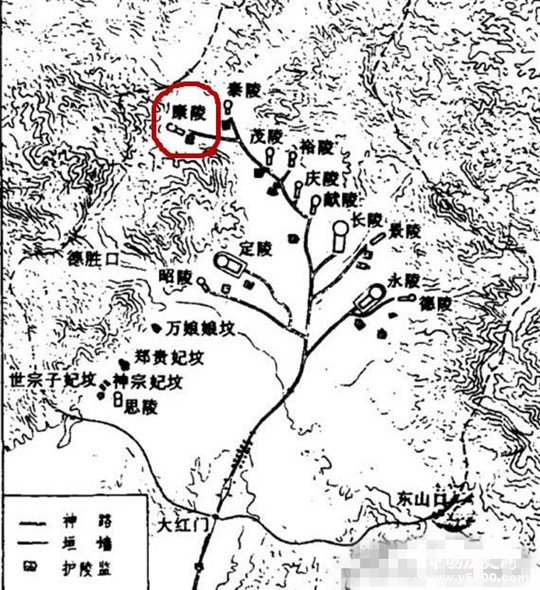 康陵在十三陵陵區(qū)的位置