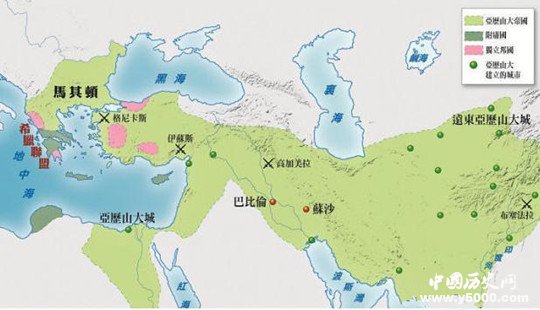 亞歷山大帝國(guó),又稱馬其頓帝國(guó),由著名的征服者亞歷山大大帝開創(chuàng),它版圖東起蔥嶺與印度河平原,南至波斯灣并包括埃及,西到色雷斯和希臘,北抵黑海及阿姆河,是歷史上繼波斯阿契美尼德王朝之后第二個(gè)地跨亞歐非三洲的帝國(guó)。