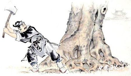 幾千年來,就這樣隨砍隨合,這棵桂樹永遠(yuǎn)也不能被砍光。據(jù)說這個砍樹的人名叫吳剛,是漢朝西河人,曾跟隨仙人修道,到了天界。