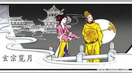 相傳唐玄宗與申天師及道士鴻都中秋望月,突然玄宗興起游月宮之念,于是天師作法,三人一起步上青云,漫游月宮。但宮前有守衛(wèi)森嚴(yán),無法進(jìn)入,只能在外俯瞰長安皇城。在此之際,忽聞仙聲陣陣,清麗奇絕,宛轉(zhuǎn)動(dòng)人!唐玄宗素來熟通音律,于是默記心中。這正是“此曲只應(yīng)天上有,人間能得幾回聞!”日后玄宗回憶月宮仙娥的音樂歌聲,自己又譜曲編舞,這便是歷史上有名的“霓裳羽衣曲”。