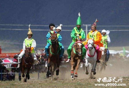 2.賽馬射箭的三天中,牧民們特別是青年男女在辛苦一年之后都穿著自己的節(jié)日盛裝,到這里唱歌跳舞,追逐自己喜歡的情侶,洋溢著節(jié)日的喜慶。三天后,按色拉寺規(guī)定,即禁止跳舞和一切娛樂活動。此后的一個月時間即是政治活動和商業(yè)交換。