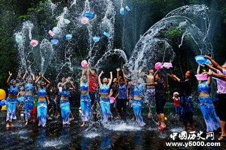 并在選定的江邊或井旁,用綠樹搭起長半里的青棚,棚下撒滿厚厚的松針,兩旁放上盛滿水的水槽。午間太陽當頂時,眾人穿行于棚下相互用松枝蘸水灑身,表示對李良的懷念和對新年的祝福。這項活動延續(xù)至今,成為傣族人民辭舊迎新、祝福吉祥的節(jié)日--潑水節(jié)。