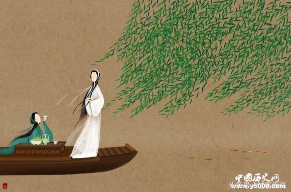 這時,突然江流中響起了船槳的聲音,隱隱約約的劃來了一艘小船,漸漸的靠近了他的船只。他定眼細看,船中有位素顏女子,正整理著衣裝站起來,儀態(tài)和姿容都十分優(yōu)雅。