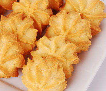 曲奇餅干中的糖和油脂要高于其它種類的餅干。比較酥脆的曲奇餅干選擇的原料是“低筋面粉”,因此曲奇餅干的蛋白質(zhì)含量并不是很高。