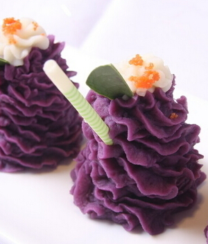 1、調(diào)味后的紫薯蓉與山藥蓉柔軟度要盡量一致,否則包起來會比較困難。
