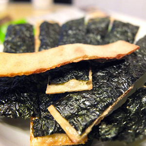 香味:海苔是由紫菜經(jīng)調(diào)味、烘烤等過程加工而成的,通過烘烤,紫菜的細(xì)胞被破壞了,貯存在細(xì)胞內(nèi)的呈味成分會(huì)溶出,賦予海苔一種特有的風(fēng)味。因此,香味對(duì)海苔來說尤為重要。質(zhì)量好的海苔,聞起來香氣撲鼻,且香味越好等級(jí)越高。