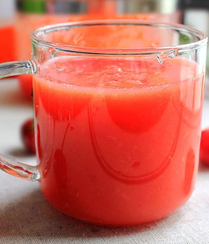 4、櫻桃汁:櫻桃80克,冷開(kāi)水1杯。櫻桃洗凈后去核,放入果汁機(jī)中加冷開(kāi)水?dāng)嚦蓹烟抑?,倒出供飲(可加適量白糖調(diào)味)。此汁具有潤(rùn)澤皮膚的作用,可消除皮膚暗瘡疤痕。