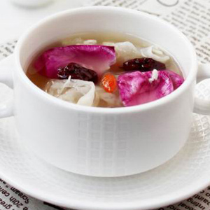 輔料: 干玫瑰花 50克 涼開水一大杯