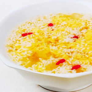 2、將蛋與湯盛入碗中,放入酒釀即可食用。