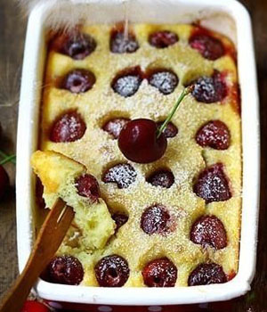 4、然后將面糊裝入烤盤,撒上櫻桃,放入預(yù)熱180度的烤箱烤20分鐘即可。