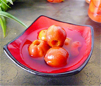 4、用果核和浸泡過山楂的水熬煮山楂,可以使湯汁顏色更好看,味道更濃郁。