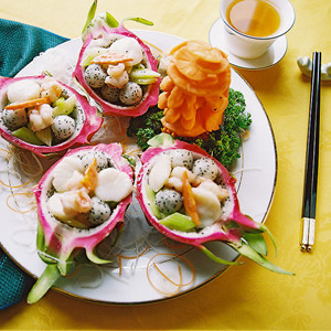 做法:將火龍果去皮切塊,烏梅去核,青瓜塊和糯米糕放入火龍果容器中,加入適量蜂蜜調(diào)味即可。不僅開胃消食、營養(yǎng)豐富,而且減肥效果非常好。