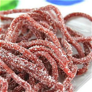 5、將晾干的山楂切成細(xì)條,再灑上白糖即可食用。