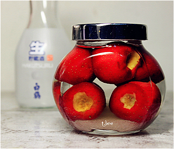 2、處理好的山楂和冰糖一同放入無水無油的干凈玻璃密封罐,倒入酒。不要用塑料。實在沒有密封的也行,把瓶蓋蓋好就行。
