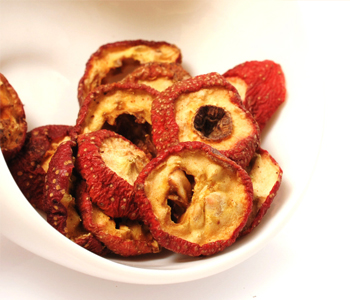 4、曬好的山楂干就可以用來(lái)泡水喝了,加入菊花或者枸杞都是不錯(cuò)的。
