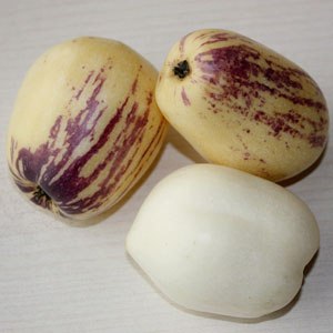 成熟的人參果果實(shí)形狀多似心臟形和橢圓形,果皮呈金黃色,有的帶有紫色條紋,有淡雅的清香,果肉清爽多汁。當(dāng)我們?cè)谔暨x人參果的時(shí)候,可以通過(guò)這些特點(diǎn)來(lái)判斷它是否成熟以及它的品質(zhì)。
