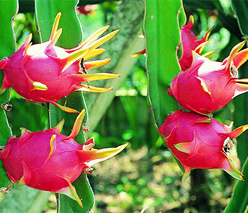 火龍果又稱紅龍果、青龍果、芝麻果,是仙人掌蜜果的新品種,原產(chǎn)于墨西哥中美洲熱帶地區(qū),于90年代初由南美引種進(jìn)入臺灣地區(qū)及泰國、越南等國,發(fā)展勢頭較快,市場價格昂貴。果實(shí)普通重量每只500克以上,最重達(dá)1500克,味道甜美,有很高的食療、藥用價值,果皮還可提取天然色素。