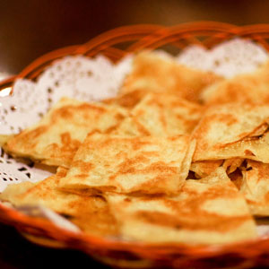 注意:面團不要太硬。僅僅用榴蓮的水份和面,所以面粉要分次加入,一次加得太多,和出的面團太硬 ,烙出的餅口感就不夠好。所以面粉適量,是由榴蓮中水份的多少決定的。