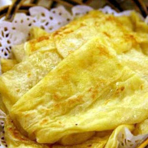 2、接下來就是煎榴蓮薄餅了。一般來說是飛的,不過如果手藝活不夠好,那么還是手動攤薄的,注意不能攤得太厚,否則會影響口感。建議用中小火煎薄餅哦,煎到兩面金黃就可以愉快吃榴蓮薄餅啦。