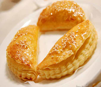 5.把包折好的榴蓮酥放進(jìn)預(yù)熱好180度的烤箱里,或者是微波爐,烤大概20分鐘直到它的表面變成金黃色為止。榴蓮酥就算做好啦。