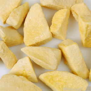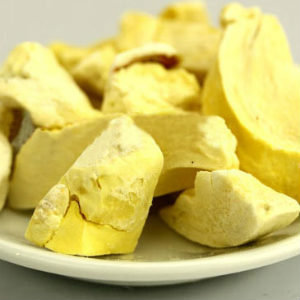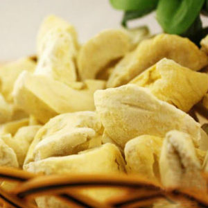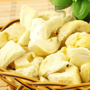 在榴蓮盛產(chǎn)時(shí)期,生產(chǎn)商會(huì)精心挑選品質(zhì)上乘、肉質(zhì)鮮美的榴蓮,采用最先進(jìn)的-45℃急速冷凍系統(tǒng)將榴蓮瞬間急凍再真空干燥。真空冷凍干燥榴蓮,即先將新鮮水果果肉放置于冷凍干燥器內(nèi),然后即時(shí)急速冷凍,令果肉內(nèi)水分轉(zhuǎn)變成冰粒,再將其置于真空容器內(nèi),以進(jìn)升華,將冰直接轉(zhuǎn)化成蒸汽。采用此法除只去掉水分外,果肉仍能維持原狀,更保留原有的營(yíng)養(yǎng)價(jià)值和新鮮水果的維他命及礦物質(zhì)。