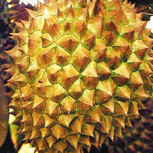 從表皮可認(rèn)識榴蓮的優(yōu)劣,凡錐形刺粗大而疏者,一般都發(fā)育良好,果粒多,果肉厚而細(xì)膩;如刺尖細(xì)而密,則果粒,果肉薄而肉質(zhì)粗?;蛴檬謱⑾噜彽膬蓚€(gè)刺拉近,很容易挨在一起的,就是成熟的。