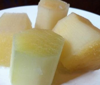 一根長長的甘蔗,去皮之后漏出白白的肉,吃起來也是十分爽口的,很甘甜,不過牙不好的筒子還是不要吃了。其實甘蔗也能給予我們一些想象,直接吃掉它,或者用來熬成湯水也是OK的,紅棗蜜糖甘蔗水,不知道大家喝過沒有呢?