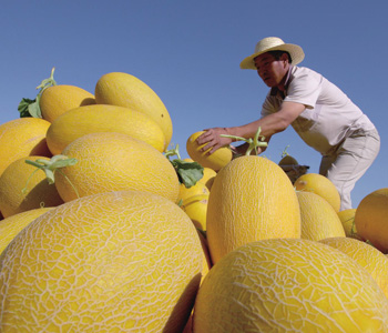 哈密瓜,別名甜瓜,甘瓜,甜瓜、網(wǎng)紋瓜。哈密瓜有“瓜中之王”的美稱,含糖量在15%左右,形態(tài)各異,風(fēng)味獨(dú)特,有的帶奶油味,有的含檸檬香,但都味甘如蜜,奇香襲人,飲譽(yù)國內(nèi)外。在諸多哈密瓜品種中,以“紅心脆”、“黃金龍”品質(zhì)最佳。哈密瓜不僅好吃,而且營養(yǎng)豐富,藥用價(jià)值高。