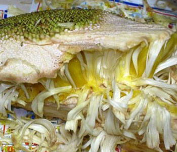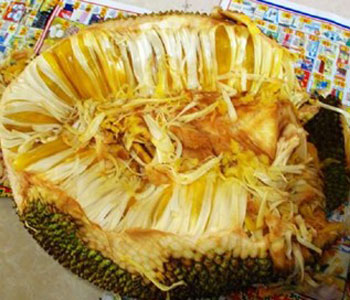 課外知識:菠蘿蜜樹液可直接用于外涂治療瘡癤紅腫,潰瘍,或由此引起的淋巴結(jié)炎。除此,近代醫(yī)學(xué)還從菠蘿蜜汁液和果皮中提煉制出一種蛋白水解酶,臨床用作抗水腫和消炎藥。