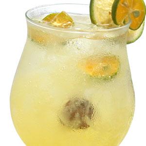 原料:青金桔10個、綠茶2茶匙(10ml)、蜂蜜適量、冰塊適量。