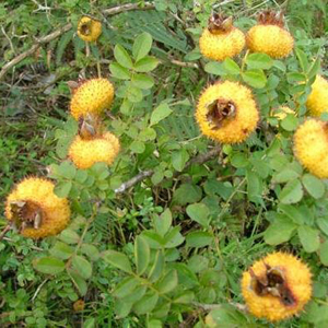野刺梨為薔薇科植物繅絲花的果實(shí),又名茨梨、木梨子,還有一個(gè)非常詩意的別稱“送春歸”。每年的8、9月是野刺梨的成熟期。這是當(dāng)?shù)厝罕姇?huì)吧它采摘下來拿到市場賣,不過由于新鮮的野刺梨不易保存,所以人們通常把它制成刺梨干,遠(yuǎn)銷到全國各地,讓其他地區(qū)的人們也能品嘗到這種新鮮的野味。