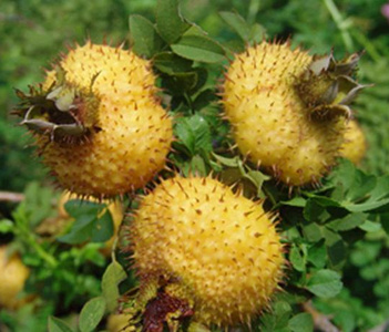 刺梨是滋補(bǔ)健身的營(yíng)養(yǎng)珍果,它的收獲期不足30天。果實(shí)多為扁圓球形,橫徑一般為二至四厘米,八至九月果實(shí)成熟,黃色,有時(shí)帶紅暈。果肉脆,成熟后有濃芳香味。果皮上密生小肉刺,俗稱之為“刺梨”。