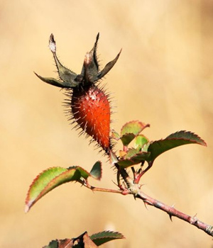刺梨子又名金櫻子,其實是刺梨花托發(fā)育而成的假果,呈倒卵形,表面紅黃色或紅棕色,有突起的棕色小點,可以入藥。
