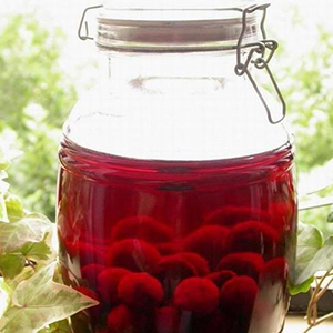 做法:將刺梨從中間剖開,放在可以密封的玻璃瓶中,倒入白酒,密封保存3個(gè)月,拿出來即可飲用。