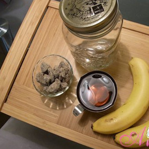 步驟2:耐熱密封瓶內(nèi)放入黑糖,再放切好的香蕉,倒入200c.c.水果醋,稍微搖晃一下;