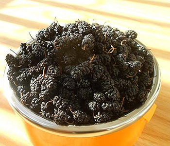 桑葚又叫桑果、桑棗,味甜汁多,是不少人喜愛(ài)的水果之一。成熟的桑葚酸甜適口,以個(gè)大、肉厚、色紫紅、糖分足者為佳。但桑葚是季節(jié)性水果,并非四季都有產(chǎn),所以人們一般會(huì)將桑葚曬干制成桑葚干,這樣就可以隨時(shí)食用了。黃桑葚干后呈深黃偏黑色。黑桑葚(紫桑椹)干后呈深紫黑色。