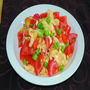 柿子炒雞蛋,又名番茄炒蛋。是許多百姓家庭中一道普通的大眾菜肴。它的烹調(diào)方法簡(jiǎn)單易學(xué),營(yíng)養(yǎng)搭配合理。在口感方面,它色澤鮮艷,口味宜人,爽口、開(kāi)胃,深受大眾喜愛(ài)。同時(shí)營(yíng)養(yǎng)價(jià)值豐富,具有營(yíng)養(yǎng)素互補(bǔ)的特點(diǎn)以及健美抗衰老的作用。