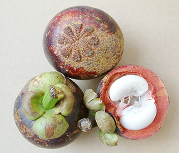 山竹成熟時(shí),果皮是紫紅色的,間有黃褐色斑塊,表面比較光滑,剝開之后有4、5個(gè)種子,種子是白色的,屬于食用部分,味道十分甘甜,汁液飽滿,果實(shí)可以生吃,也可以做成果脯,每年的11-12月是果期。山竹在亞洲和非洲熱帶地區(qū)廣泛栽培,現(xiàn)在在我國臺(tái)灣、福建、廣東和云南也有引種或栽培。