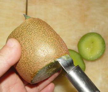 這是吃獼猴桃最常用的方法,用水果刀把皮削了,直接咬著吃,簡單方便,而且也好吃,但是要保證它是成熟的哦。這樣的吃法是較為豪爽的。