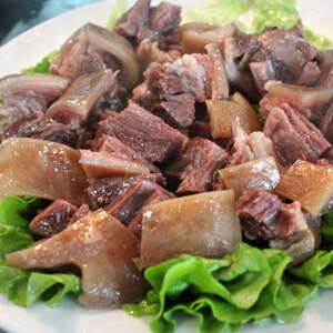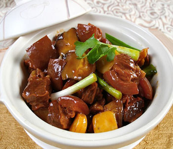 制法:將狗肉切成4厘米見方塊,用清水漂洗2次,控干水分,將薄荷洗凈,摘取嫩尖。炒鍋上火,注入菜子油,燒至7成熟,下草果、大料、花椒、白糖、鹽、干辣椒段、蔥、姜、醬油,下狗肉煸炒20分鐘,注入肉湯,燒開后倒入砂鍋。將沙鍋上火,把白酒分兩次加入,改用小火,燜約1小時,湯汁收稠時,放上薄荷,連同沙鍋上桌。