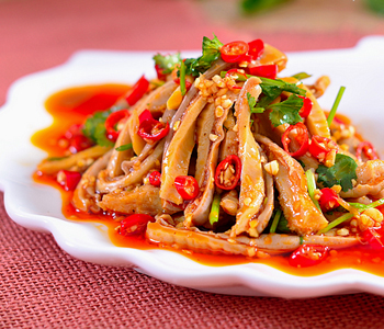 堿油法:將豬肚用堿面+香油混合搓5分鐘,搓出黏液后,洗凈再制作。